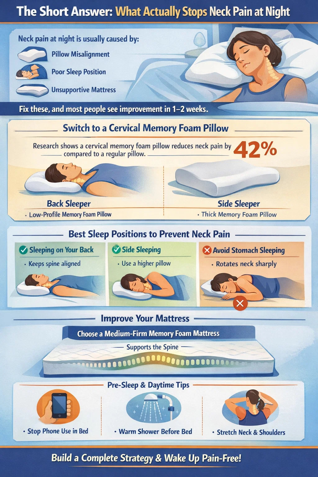 La maggior parte delle persone che implementano tutte e cinque le fasi di questa sequenza riportano una riduzione significativa e prolungata del dolore al collo correlato al sonno entro tre o quattro settimane. La combinazione del corretto supporto del cuscino attraverso prodotti in memory foam di qualità, una migliore posizione del sonno e un ridotto accumulo di tensione durante il giorno affronta il problema da ogni angolazione contemporaneamente, piuttosto che fare affidamento su una singola soluzione.